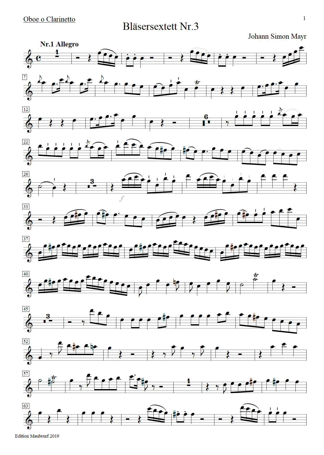 01 Mayr Sextett 3 Oboe o Clarinetto
