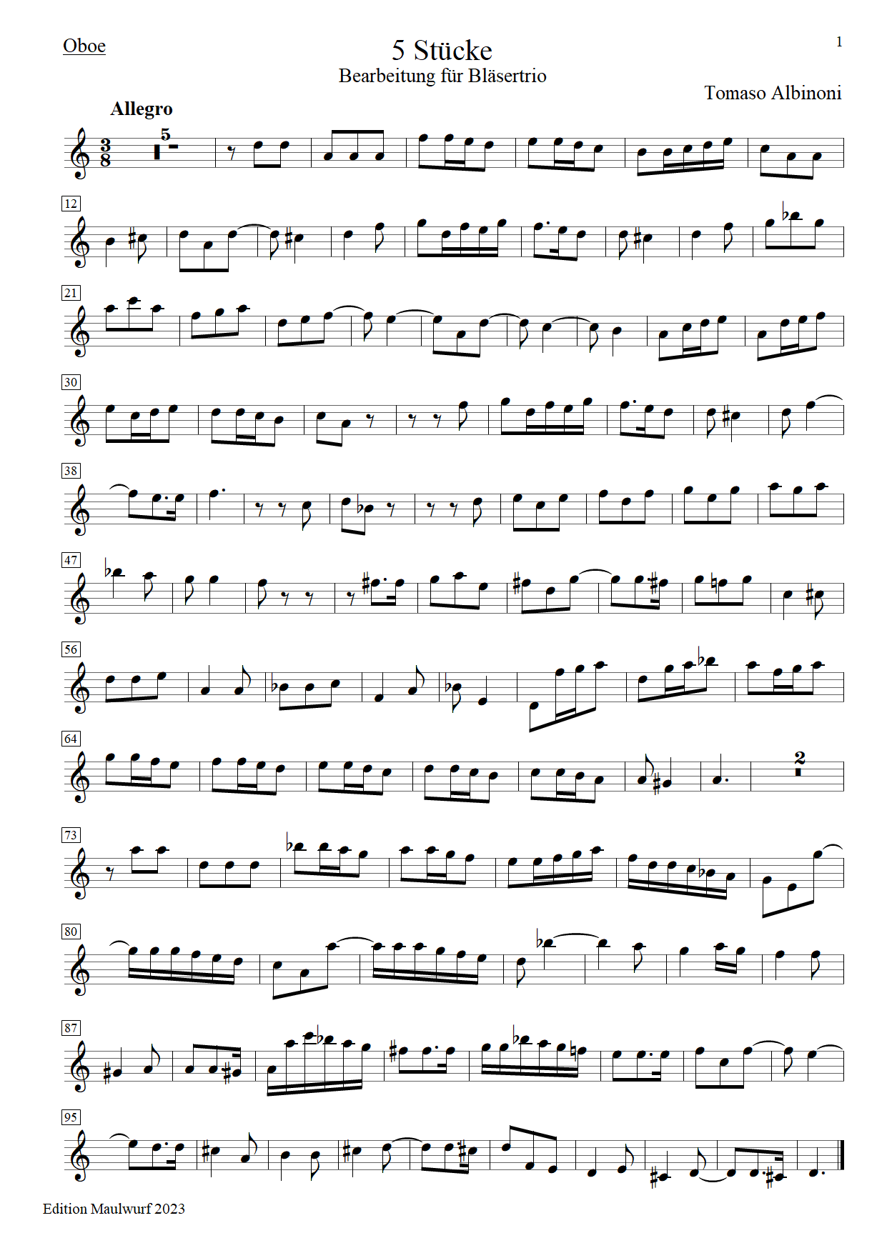 Albinoni Bläsertrio Oboe