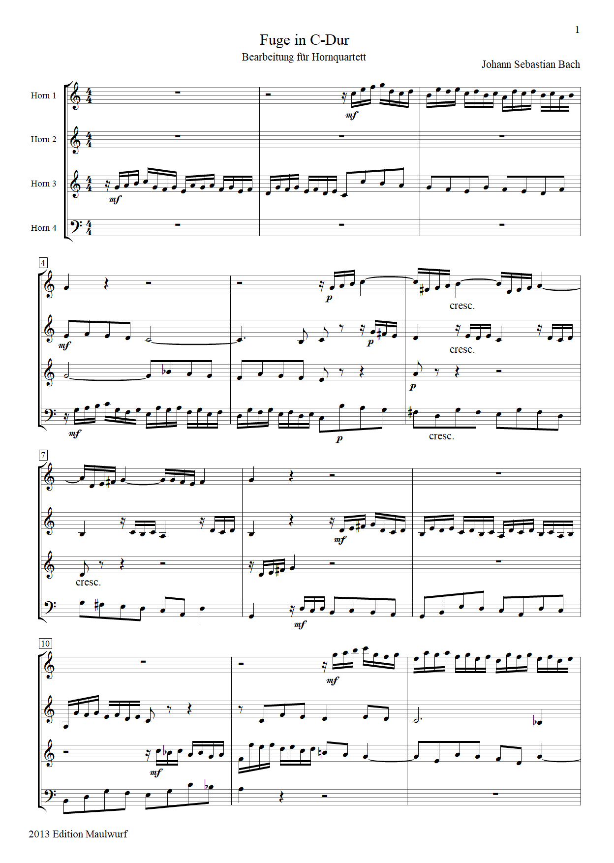 Fuga in C 2 Bach Partitur
