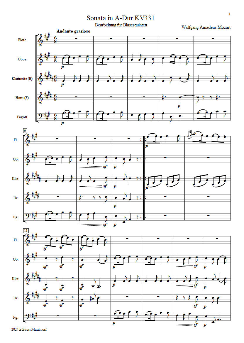 Alla Turca Quintett Partitur