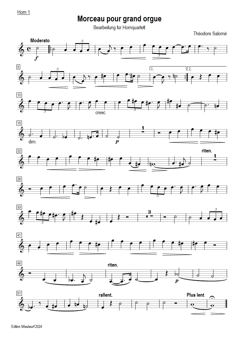 Morceaux pour grand orgue Horn1