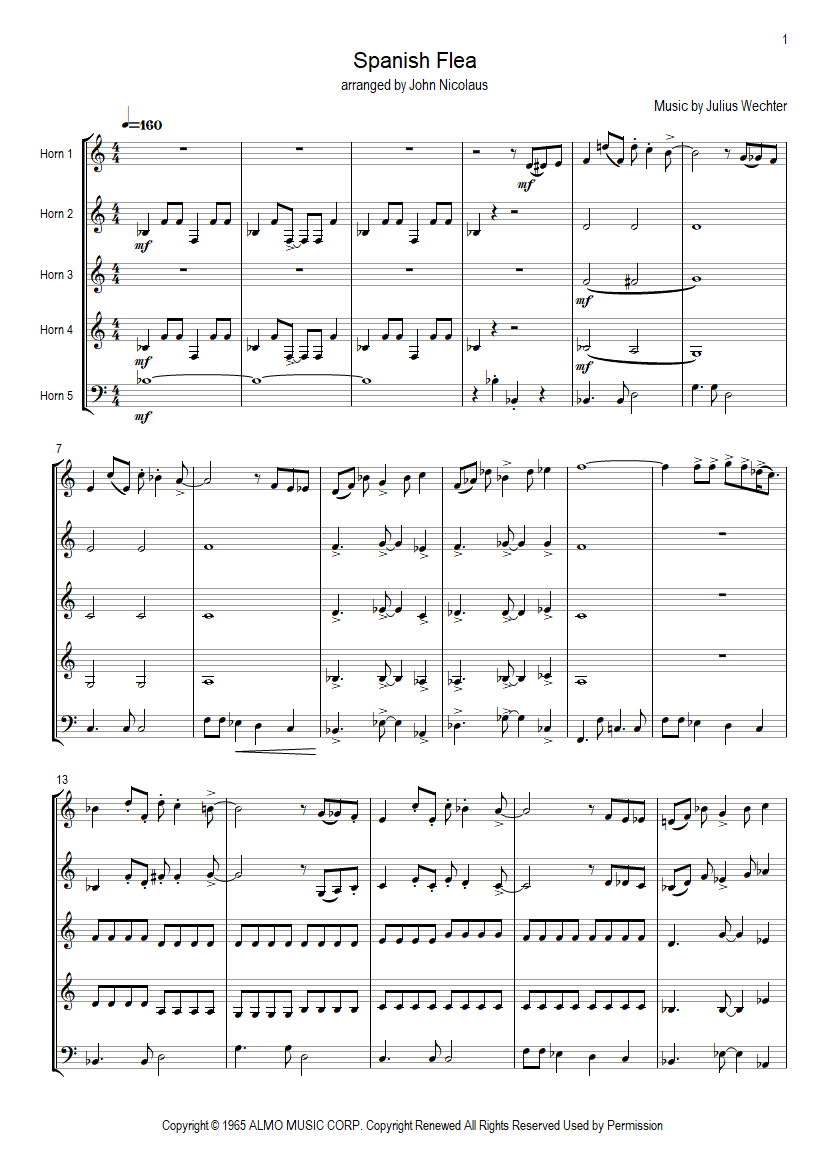 Spanish Flea horn quintet Partitur