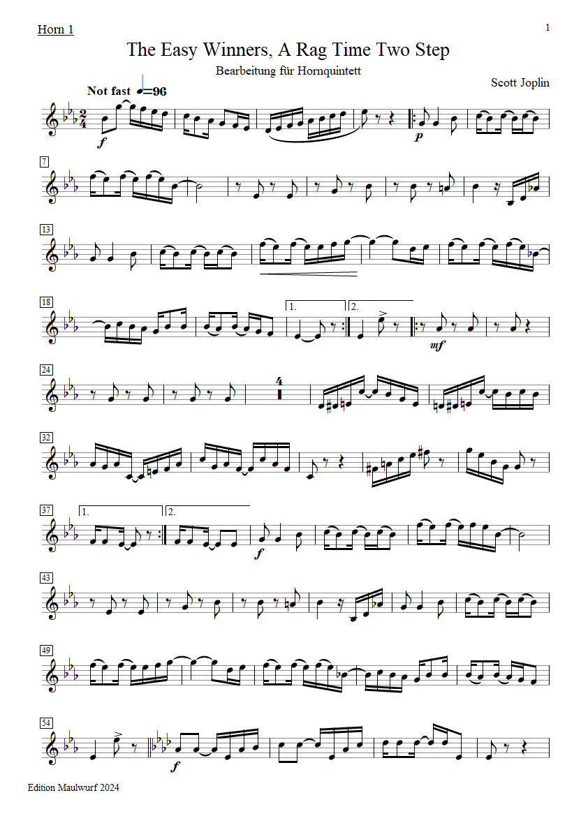 Easy Winners horn quintet Horn1