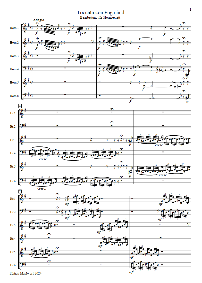 Toccata con Fuga Hornsextett Partitur