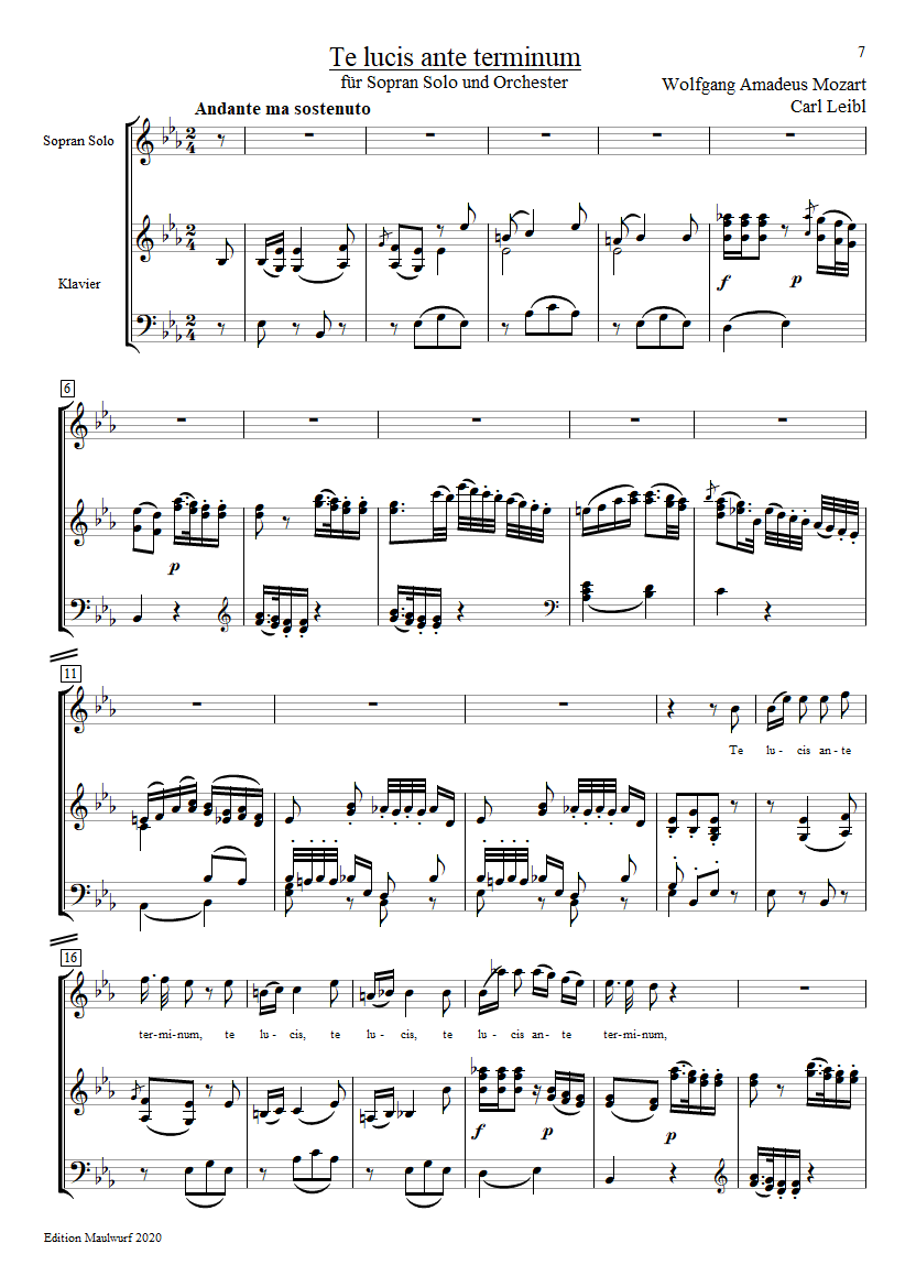 Mozart Te lucis Partitur Klavierauszug Violinschlüssel