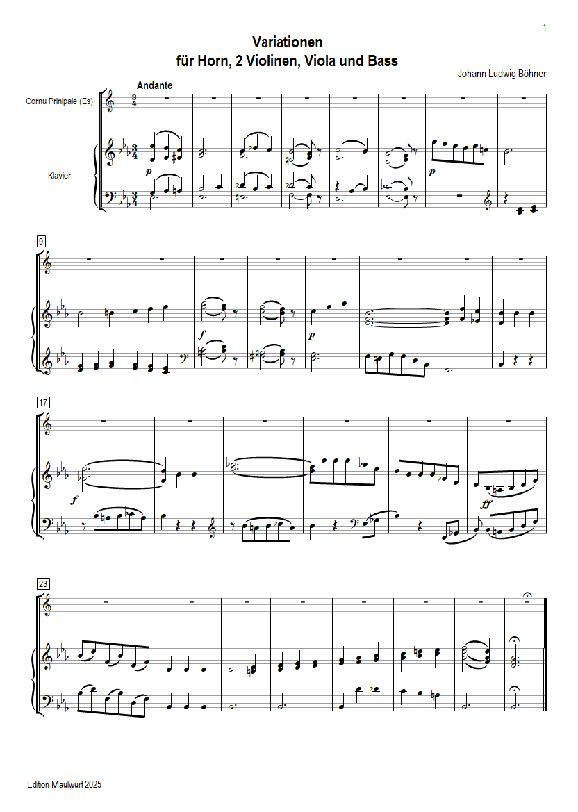 Böhner Horn Variationen Partitur
