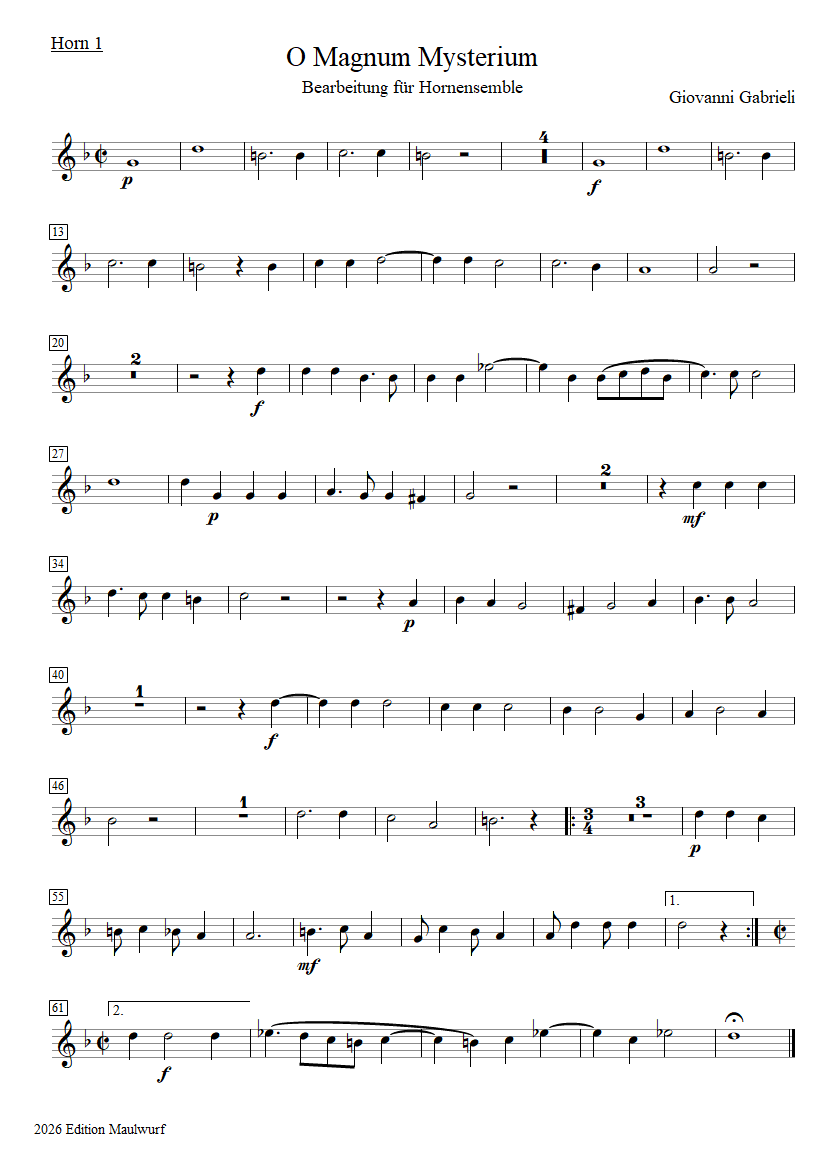 Gabrieli O magnum mysterium Horn 1